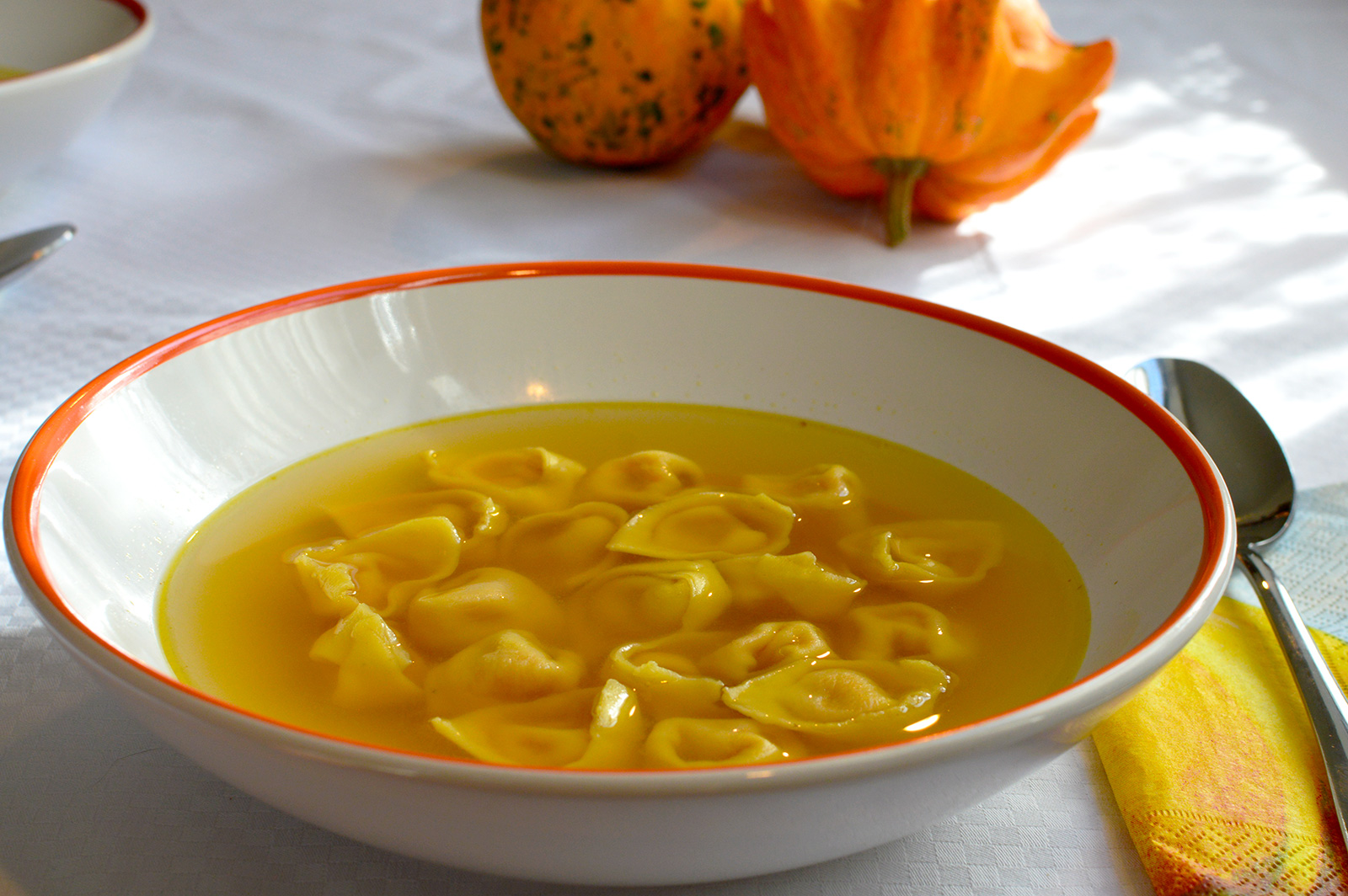Ez az étel ihlette tehát az én őszi zöldségerőlevesemet, amiben sütőtökös tortellinik úsznak. Finom, laktató és melengető leves hús nélkül, így a hideg késő őszi napokon.